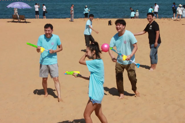 最后就是我們的放松時刻啦!~前面兩個活動取得優(yōu)異成績的同學(xué)們比較占優(yōu)勢啦~水槍水量足!壓力大!哈哈哈哈(捂臉)。。。